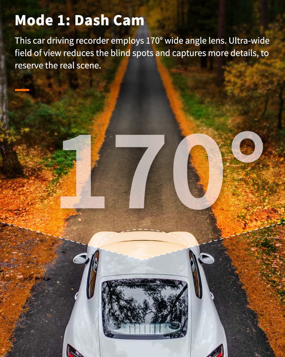 - 170°Wide-angle & Excellent Night Vision: Car dash camera combined with 170°super wide-angle F1.8 aperture and wide dynamic range(WDR)/HDR ensures the clarity of images at night even though in low-light environments