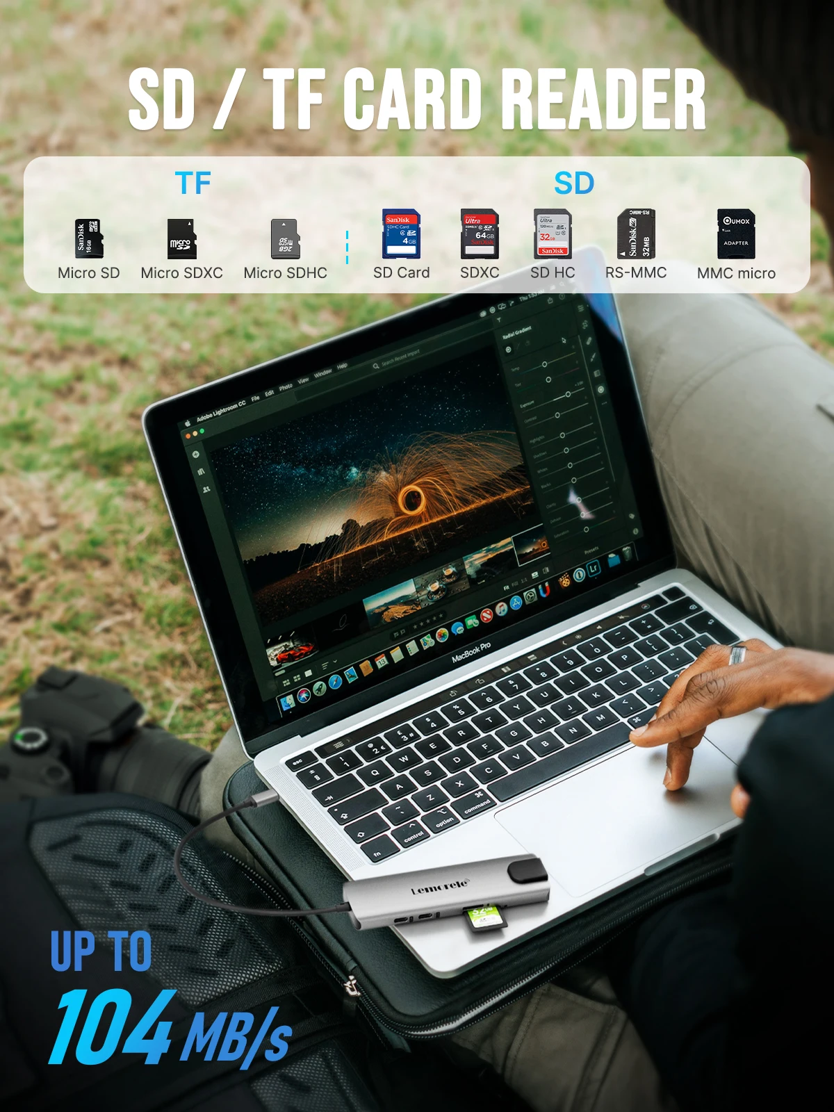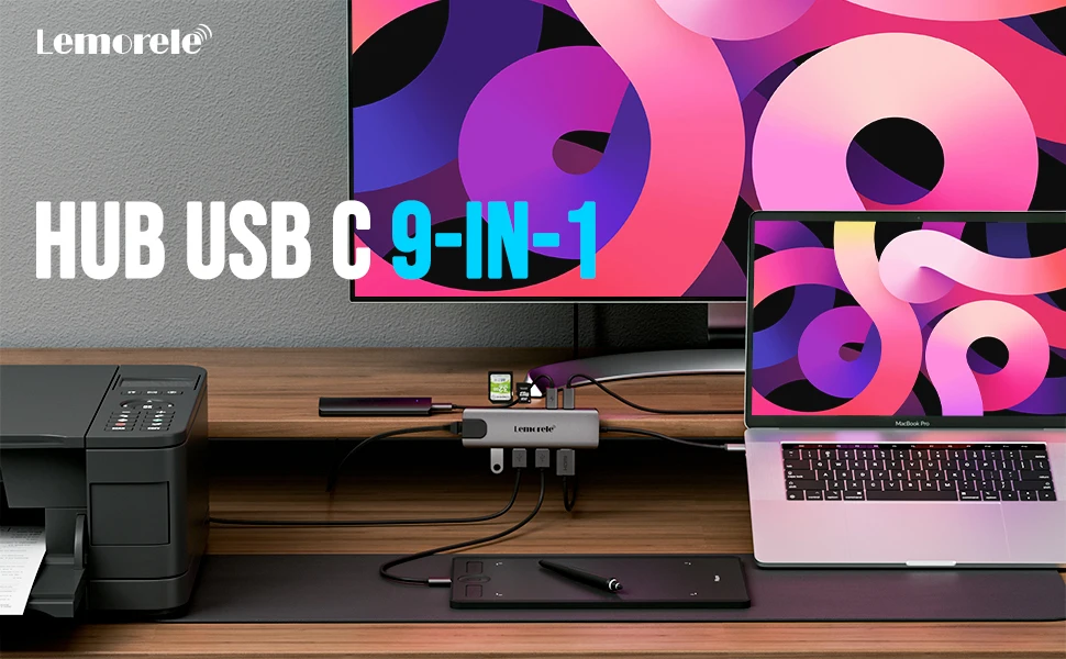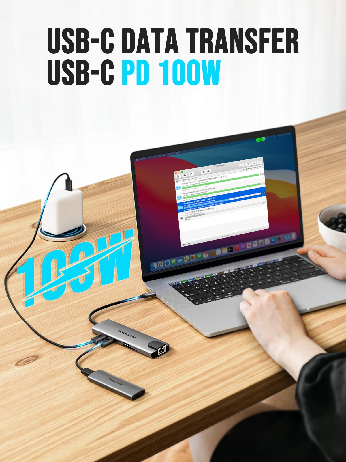 9-in-1:3* USB-A 3.0 + RJ45 1000M + HDMI 4K@30Hz+USB-C 3.0 + SD + TF + PD100W